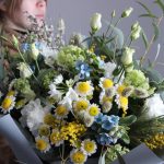 сантини ромашка – 4 шт.Гениста – 1 шт.Твидия – 3 шт.Вибурнум – 2 шт.канареечник – 5 шт.Эвкалипт – 4 шт.Нарцисс кустовой – 3 шт.Лизиантус – 3 шт.Фисташка – 2 шт.Матрикария Ромашка – 2 шт.Упаковка дизайнерская – 1 шт.Мимоза – 1 шт.
