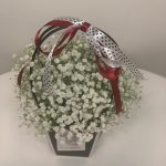 “Сиреневый туман” – композиция из гипсофилы в шляпной коробке