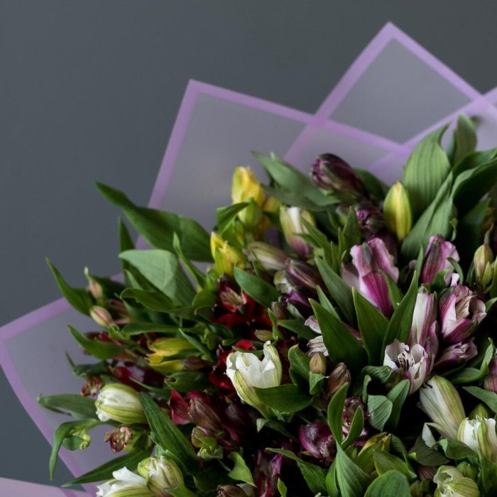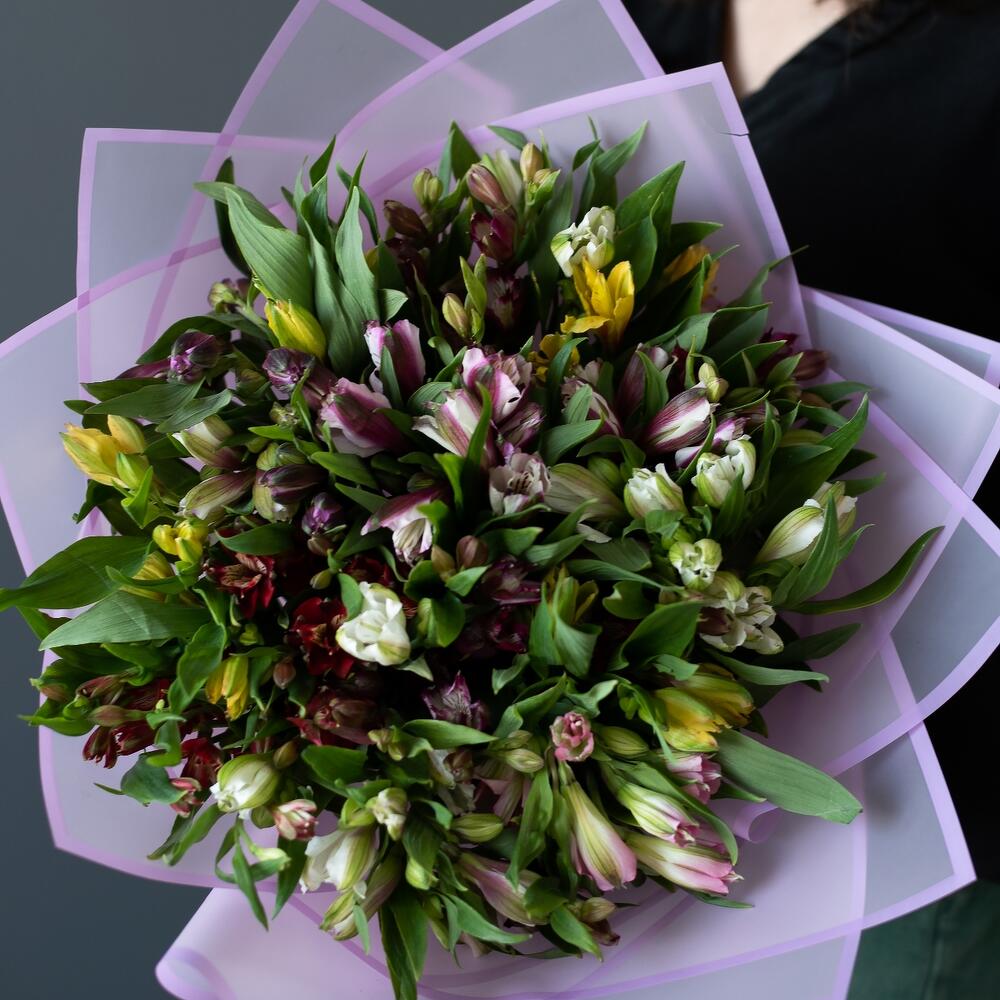 альстромерия микс – 21 шт.Корейская упаковка – 3 шт.Лента атласная – 2 шт.