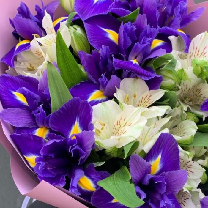 Букет ирисов с альстромериями