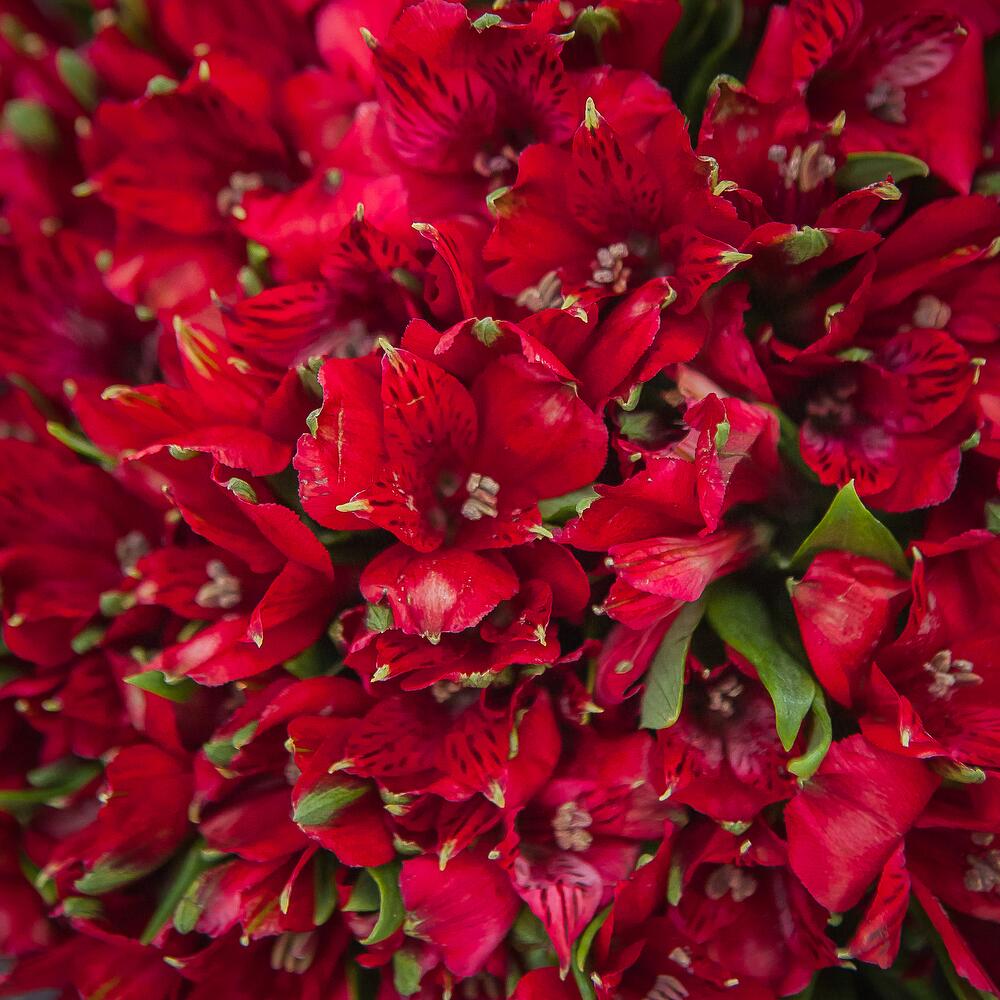 Альстромерия красная – 19 шт.Упаковка матовая пленка – 1 шт.Лента атласная – 1 шт.