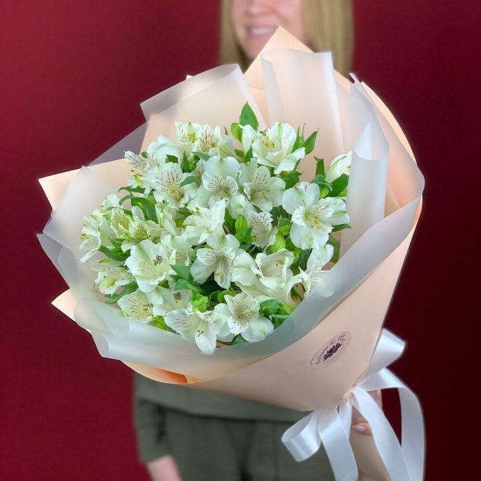Нежный букет из альстромерии с нежном оформлении