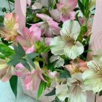 Альстромерия – 8 шт.Эвкалипт – 2 шт.Оазис флористический – 1 шт.Сумка картон – 1 шт.