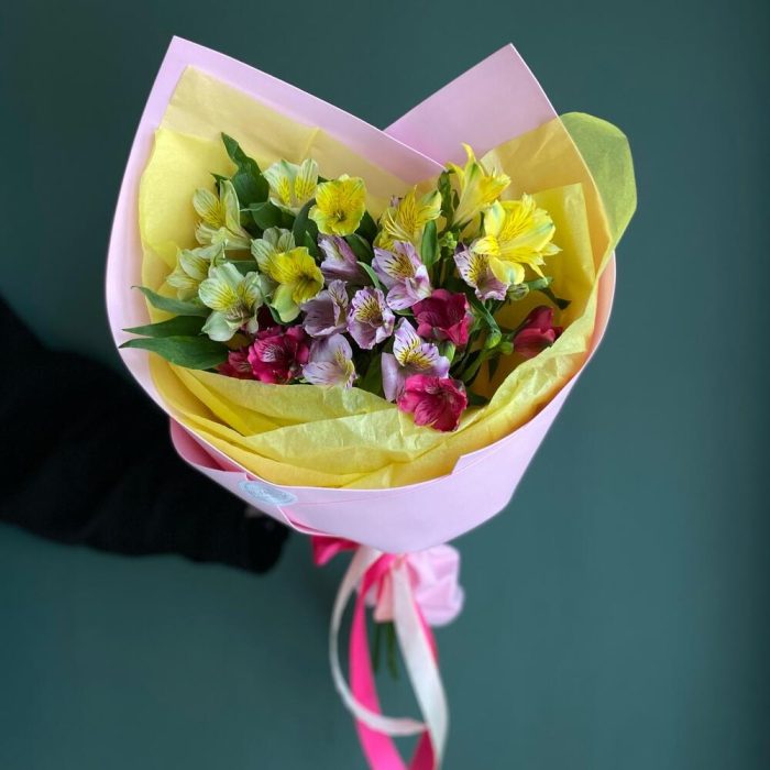 Яркий , вызывающий улыбку , моно букет с альстромерией – приятные комплимент коллеге или любимой