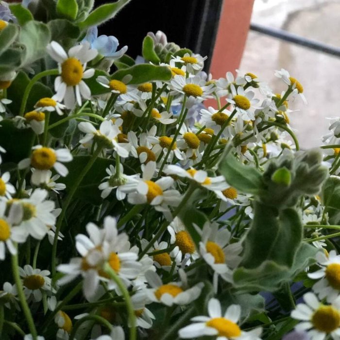 Букет из матрикарии и твидии в стильной упаковке “Луговая нежность”