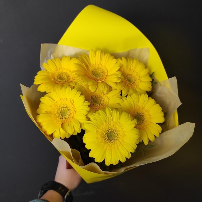Гербера – 7 шт.Упаковка дизайнерская – 1 шт.