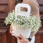 “Сиреневый туман” – композиция из гипсофилы в шляпной коробке