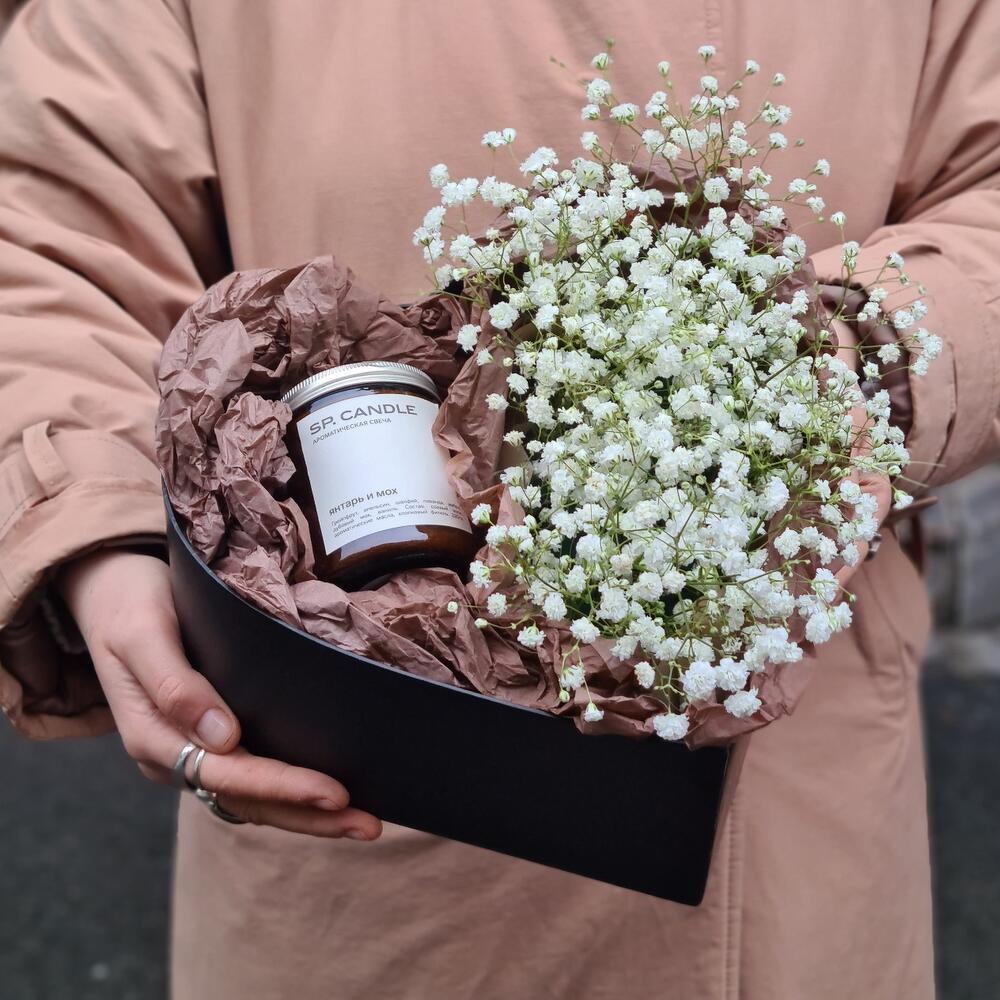 Цветы и сладости в коробке