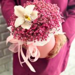 Яркая, насыщенная шляпная коробка из воздушной гипсофилы,с долгоиграющей Орхидеей мини понравится яркой и энергичной получательнице и будет долго радовать ее!Также необычная композиция подойдет для любого случая и торжества!К каждой композиции мы приложим конверт с инструкцией по уходу,средство для продления жизни цветов и подпишем открытку с Вашими пожеланиями!С Уважением VaraBoro flowers