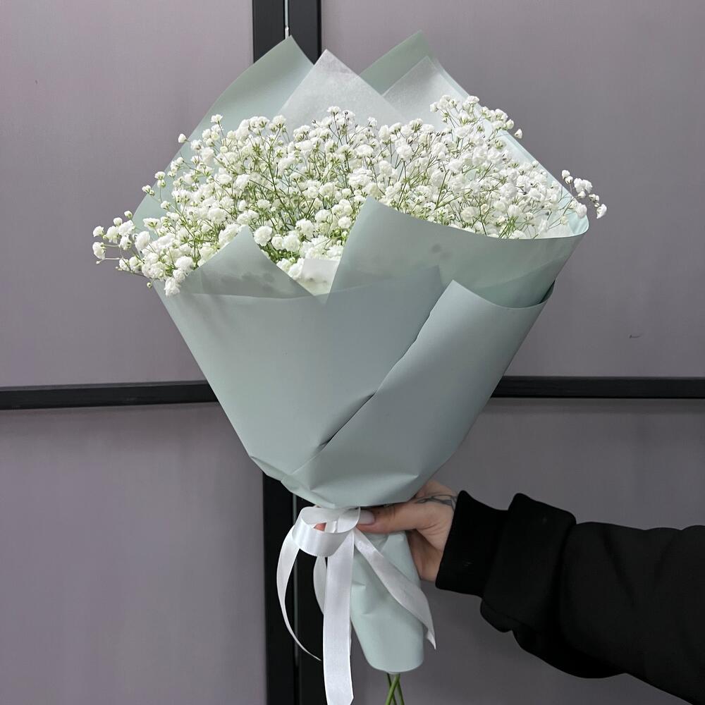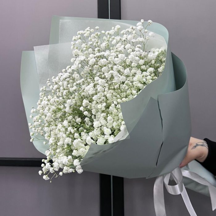 Гипсофила – 5 шт.Лента атласная – 2 шт.Пленка матовая – 5 шт.Тишью – 1 шт.