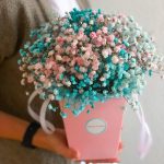 “Сиреневый туман” – композиция из гипсофилы в шляпной коробке