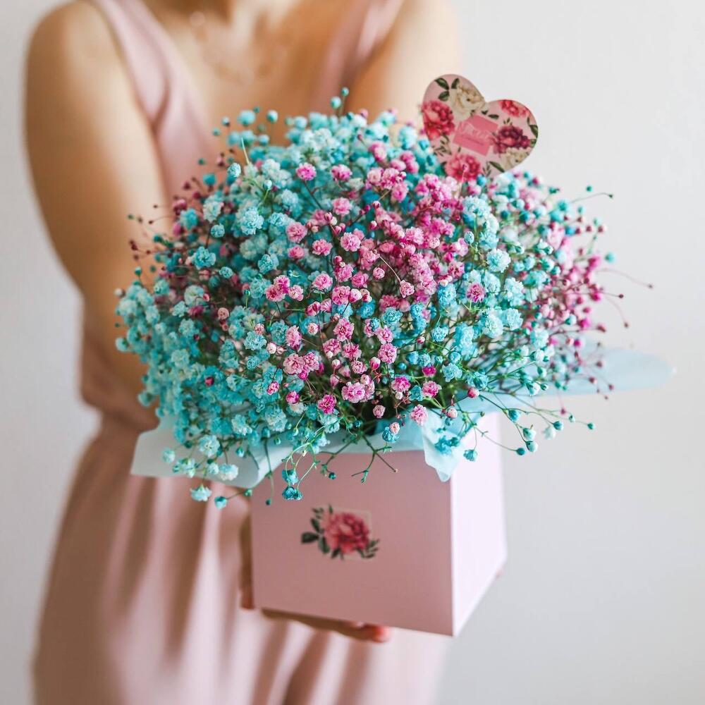Большая коробка с цветной гипсофилой