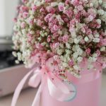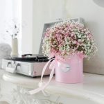 “Сиреневый туман” – композиция из гипсофилы в шляпной коробке