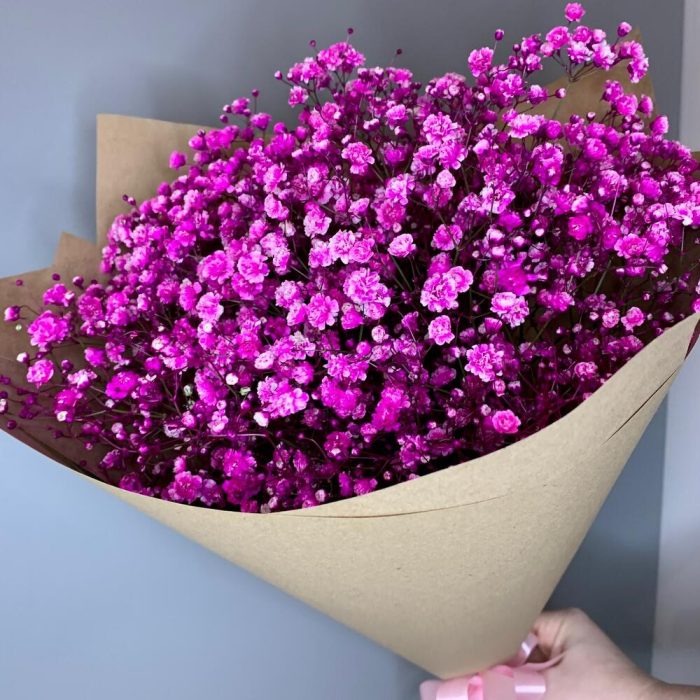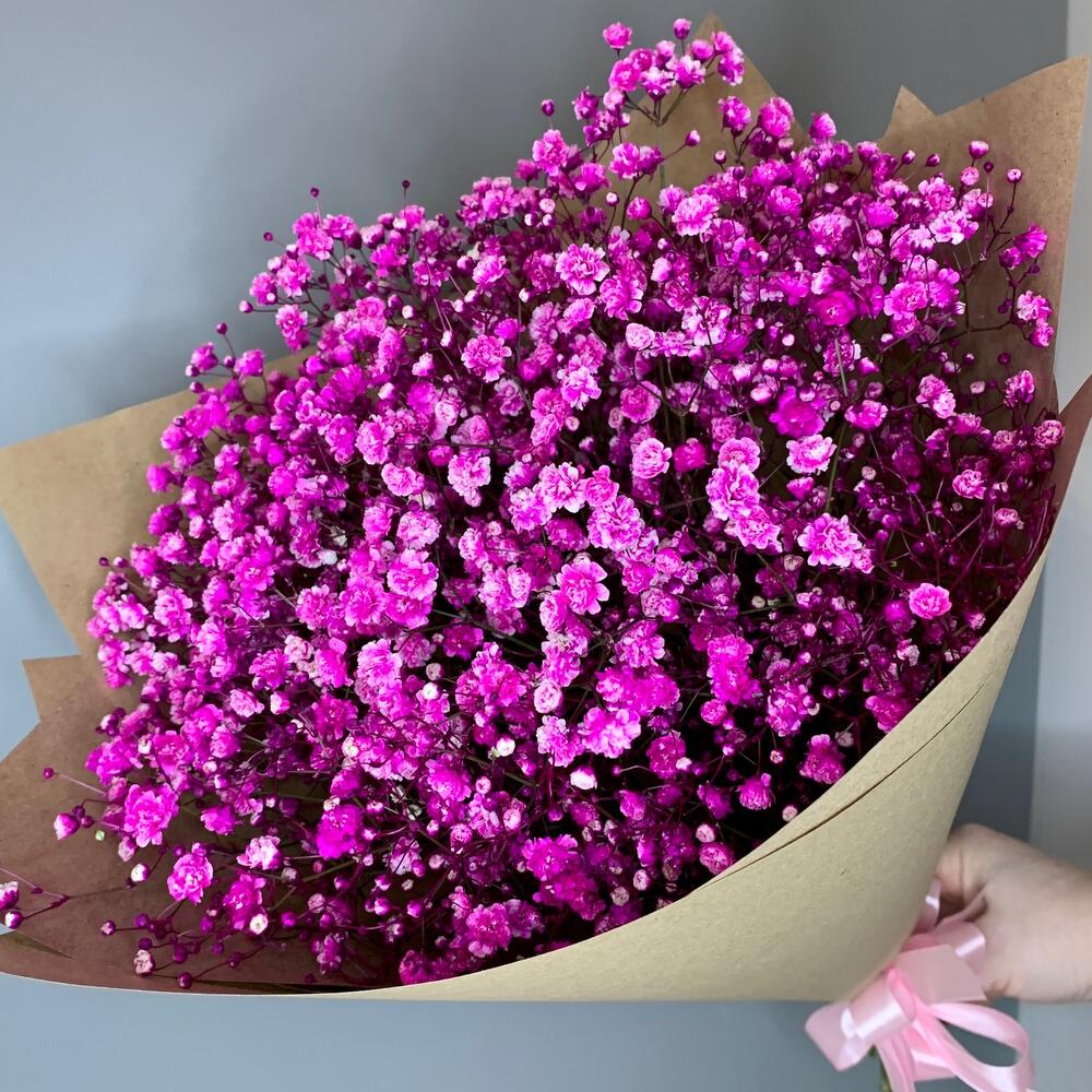 гипсофила радужная – 5 шт.Упаковка дизайнерская – 2 шт.Лента атласная – 2 шт.