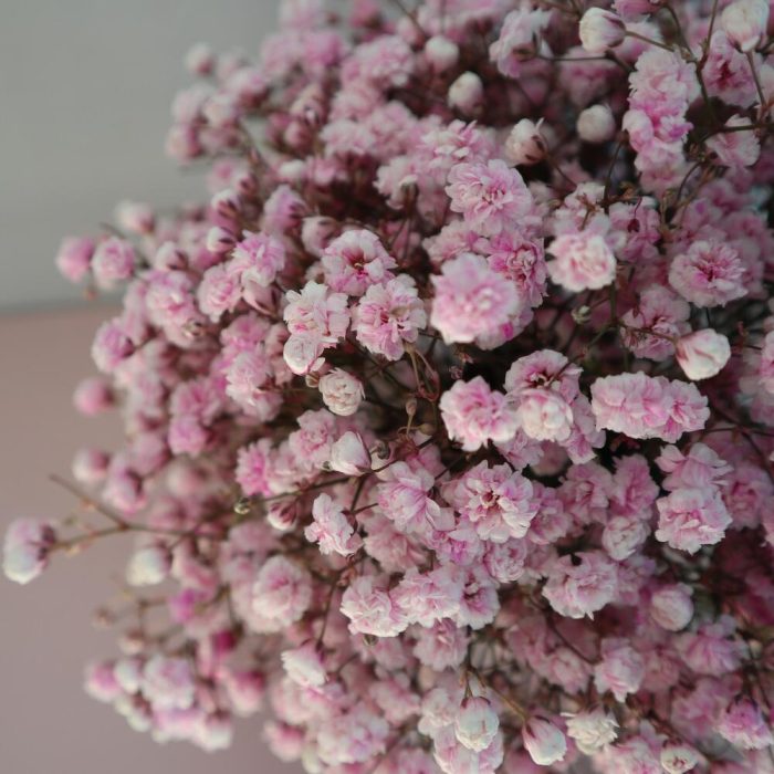 Гипсофила розовая – 4 шт.кашпо керамика ручной работы – 1 шт.Флористическая губка (оазис) – 1 шт.Матовая пленка – 1 шт.