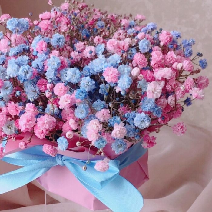 Мини композиция из розовой и голубой гипсофилы