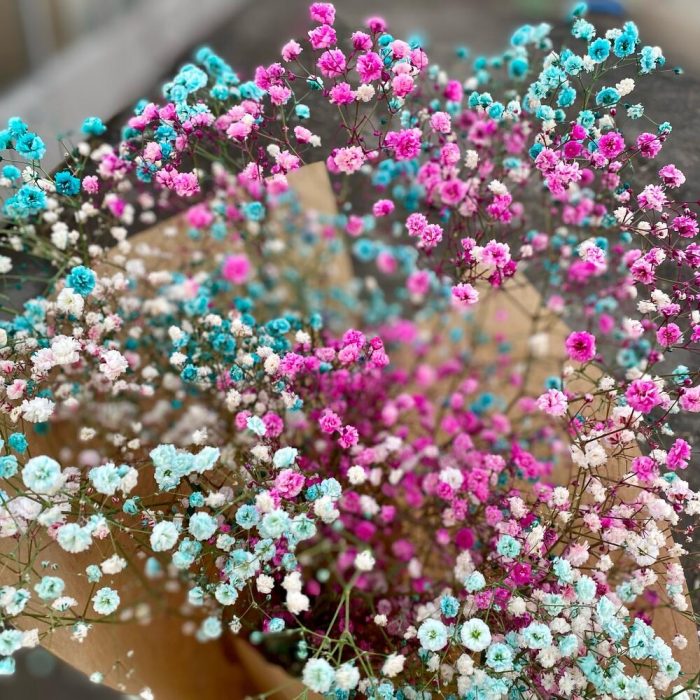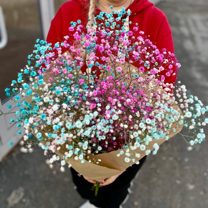 гипсофила радужная – 5 шт.Крафт упаковка – 1 шт.Лента атласная – 1 шт.