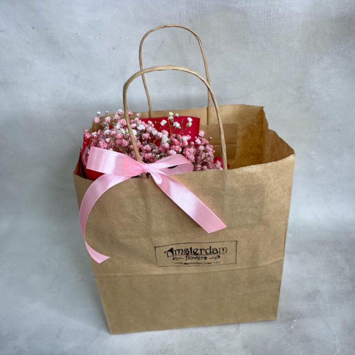 raffaello 150 гр – 1 шт.Гипсофила – 3 шт.Упаковка – 1 шт.Пакет крафт – 1 шт.