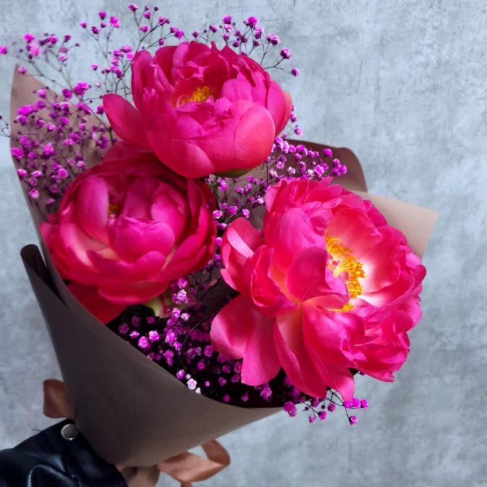 9 коралловых пионов