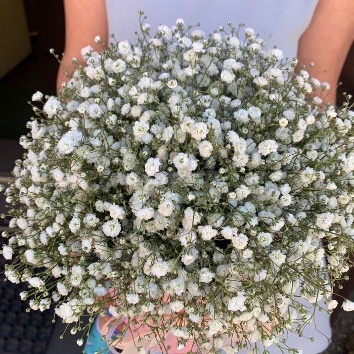 Нежная воздушная гипсофила в стильной шляпной коробке