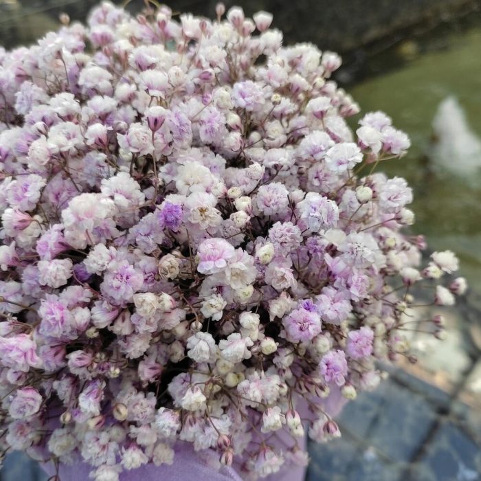 “Сиреневый туман” – композиция из гипсофилы в шляпной коробке