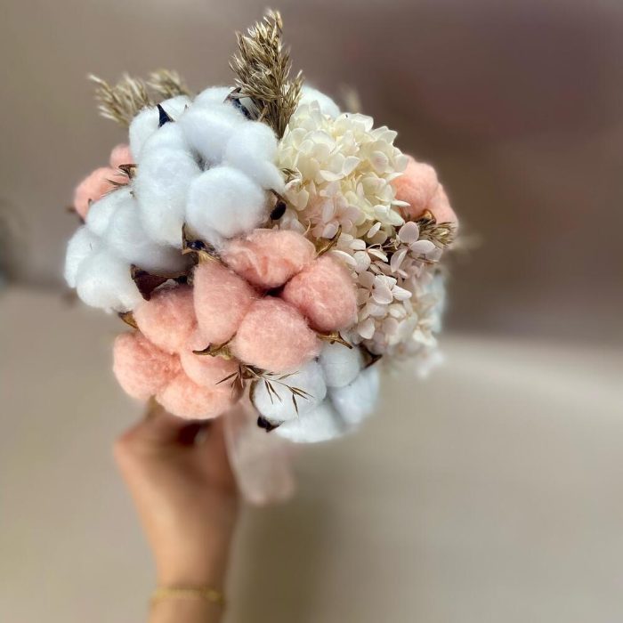 Хлопок – 12 шт.гортензия стабилизированная – 1 шт.Лента – 1 шт.