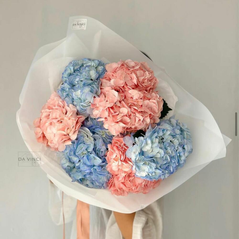 Букет из гортензий в стильном оформлении. Заказав букет с доставкой от Da Vinci, Вы скрасите день обладательницы букета и подарите ей незабываемые эмоции.