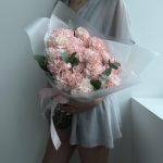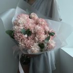 Букет из пиона, розовых гвоздик и роз