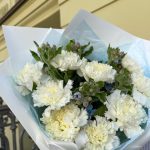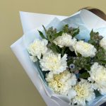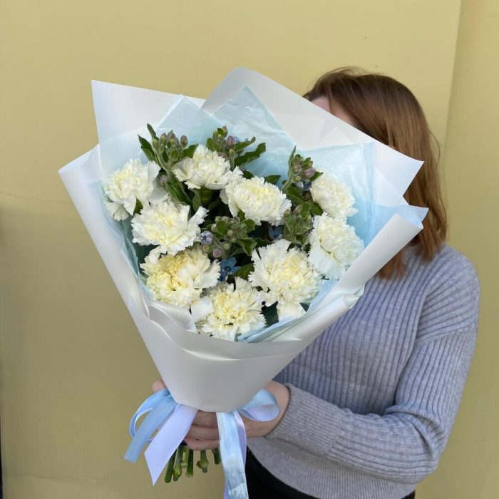 Монобукет из 15 белоснежных диантусов и ароматного эвкалипта "Океанический бриз"