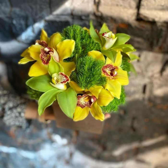 ЦИМБИДИУМ – 11 шт.Диантус – 6 шт.Оазис – 1 шт.Ящик – 1 шт.