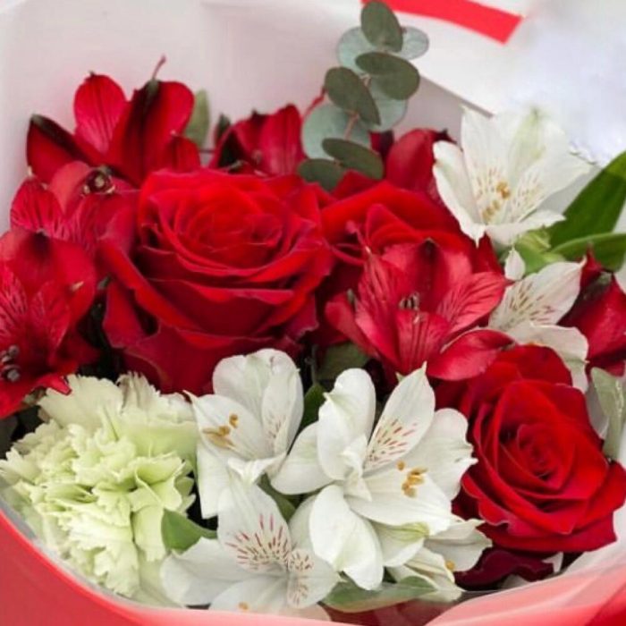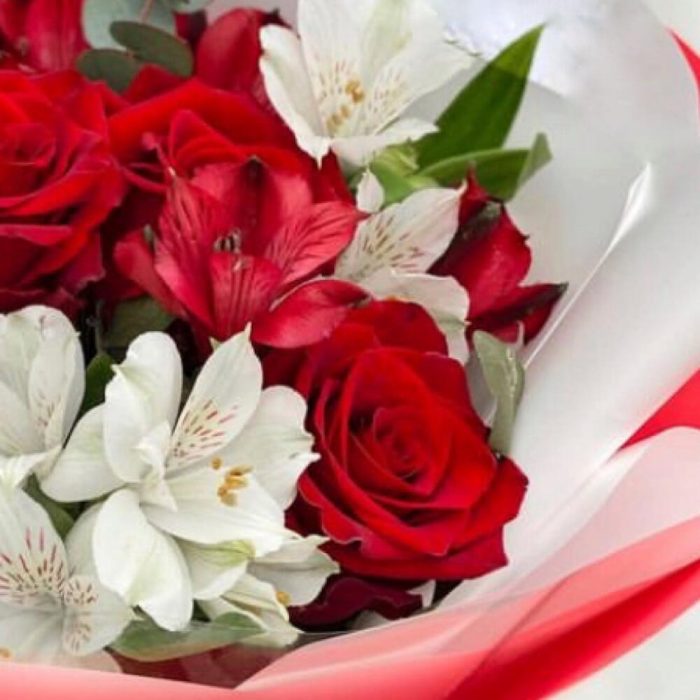 Букет с красной альстромерией и розой «Вкус страсти»