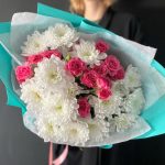 Хризантема кустовая – 3 шт.Упаковка – 1 шт.Роза кустовая розовая – 3 шт.