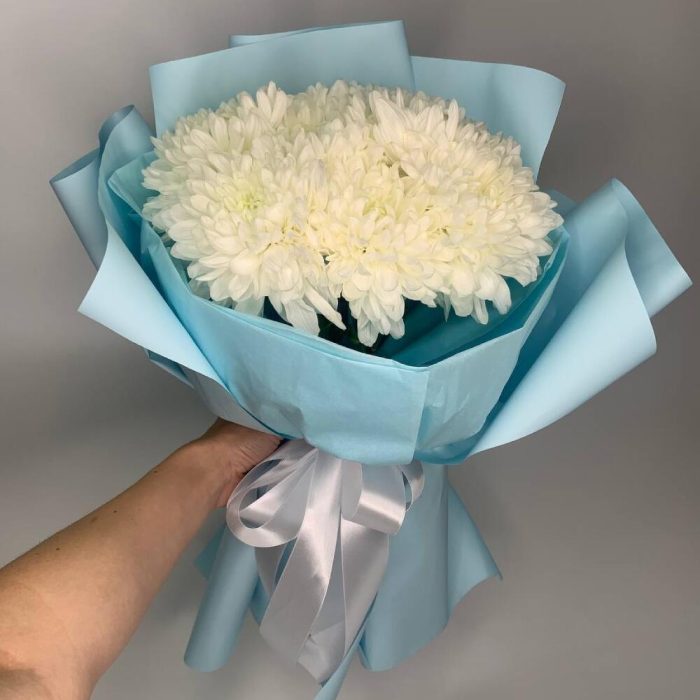 Класичний монобукет з білих хризантем
