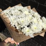 Лента атласная – 1 шт.Хризантема кустовая белая – 7 шт.Упаковка дизайнерская – 1 шт.