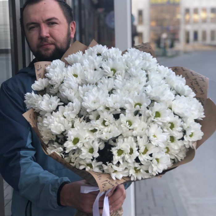 Белоснежная хризантема в стильной упаковке!