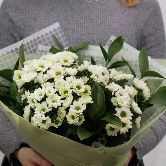 Хризантема кустовая Сантини – 11 шт.Пленка – 1 шт.Лента – 1 шт.