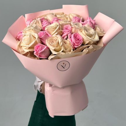 Моно букет из нежно- розовых роз ,35 шт в фирменной упаковке