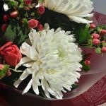Букет с колючками, хризантемами и колдун травой