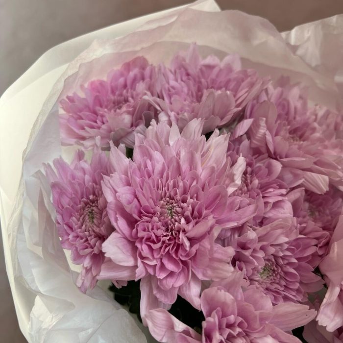 Кустовая хризантема – 3 шт.декоративная упаковка – 1 шт.Атласная лента – 1 шт.