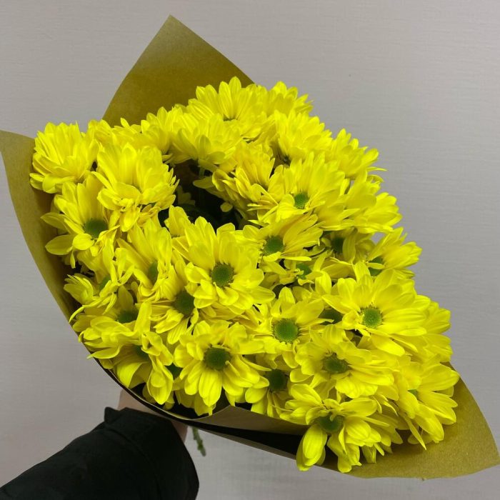 Хризантема кустовая желтая ромашковидная – 5 шт.Крафт упаковка – 1 шт.веревка декоративная – 1 шт.