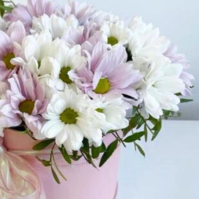 Нежная очаровательная композиция из хризантем в шляпной коробке – отличный комплимент для близкого человека. Свежие ароматные цветы станут приятным сюрпризом и подарят прекрасное настроение.Уважаемые покупатели! Пожалуйста обратите ваше внимание на размер композиции при заказе! Он учитывается вместе с упаковкой Чтобы наши прекрасные композиции дольше радовали получателя рекомендуем вам:⭐Не вынимать цветы из коробки/корзинки⭐Поливать композицию каждый день (воду нужно вливать в центр, чтобы вода правильно распределилась) ⭐Не ставить цветы у отопительных приборов и на сквозняке