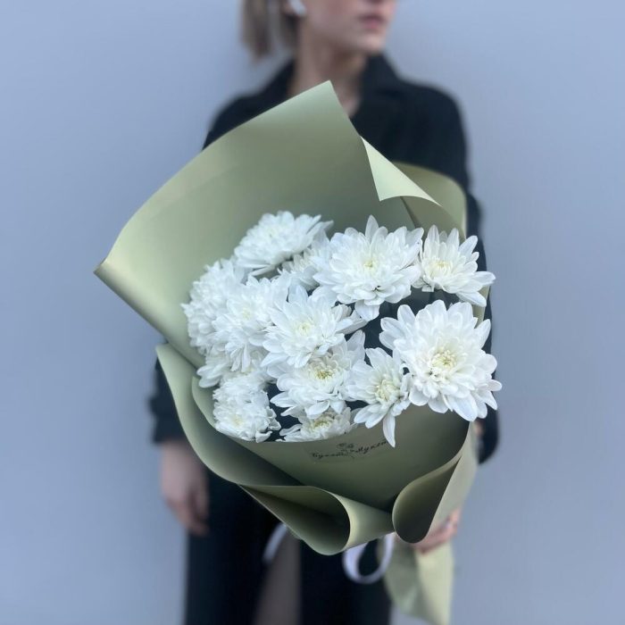 Хризантема кустовая – 3 шт.Пленка дизайнерская – 2 шт.Лента атласная – 1 шт.