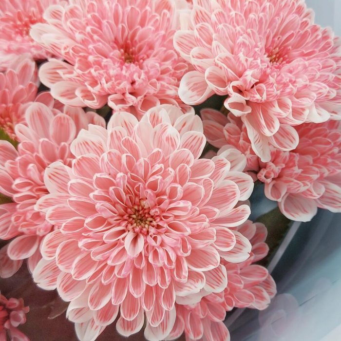 Зелень – 2 шт.Упаковка дизайнерская – 1 шт.Хризантема кустовая крашенная – 5 шт.Средство для продления жизни цветов – 1 шт.