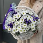 Корзина Лукошко из хризантемы и ирисов