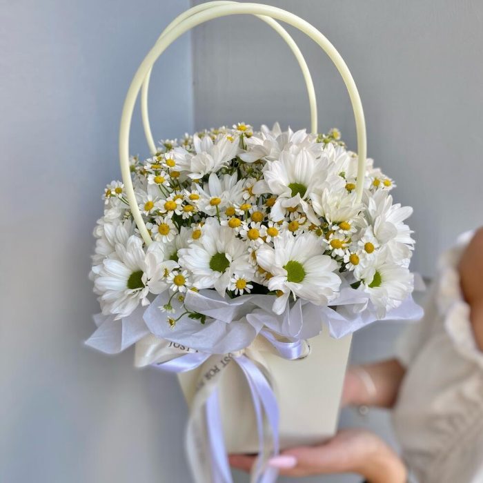 “Атлас☁️” – цветочная композиция с зефиром в деревянном ящике
