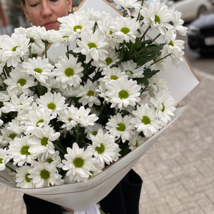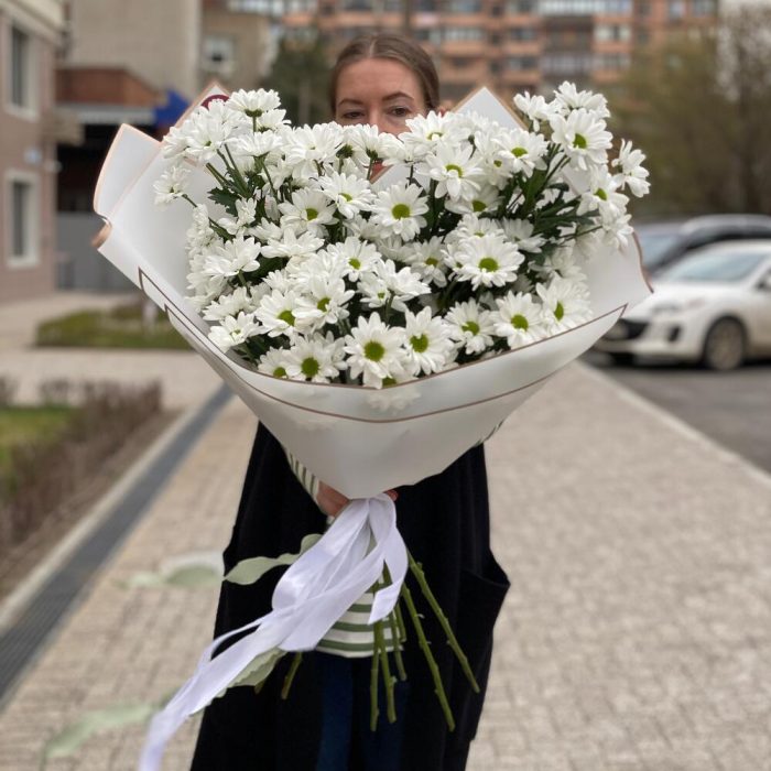 Монобукет белой кустовой хризантемы ромашка 9 шт