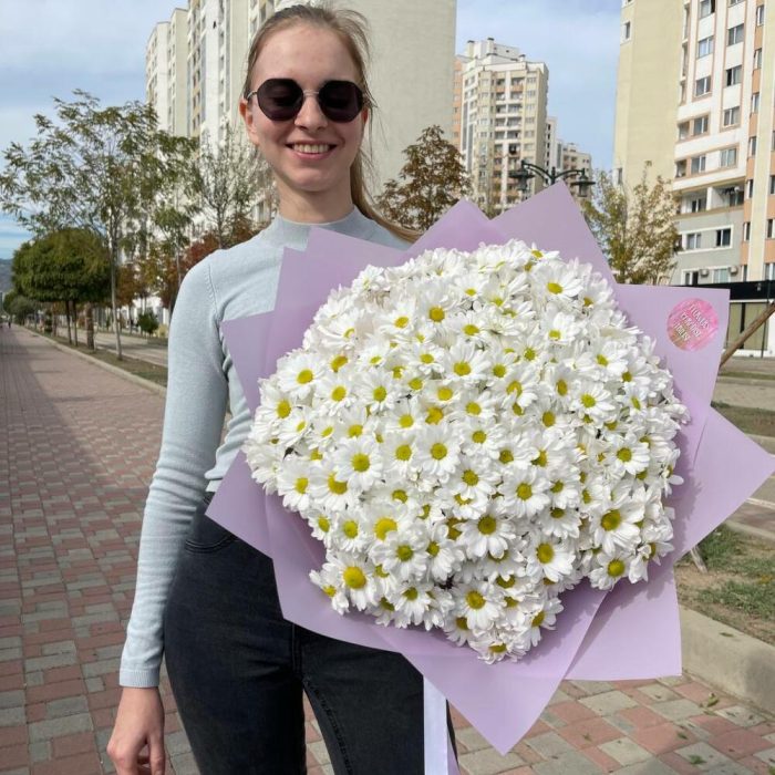 Монобукет из ромашковых хризантем