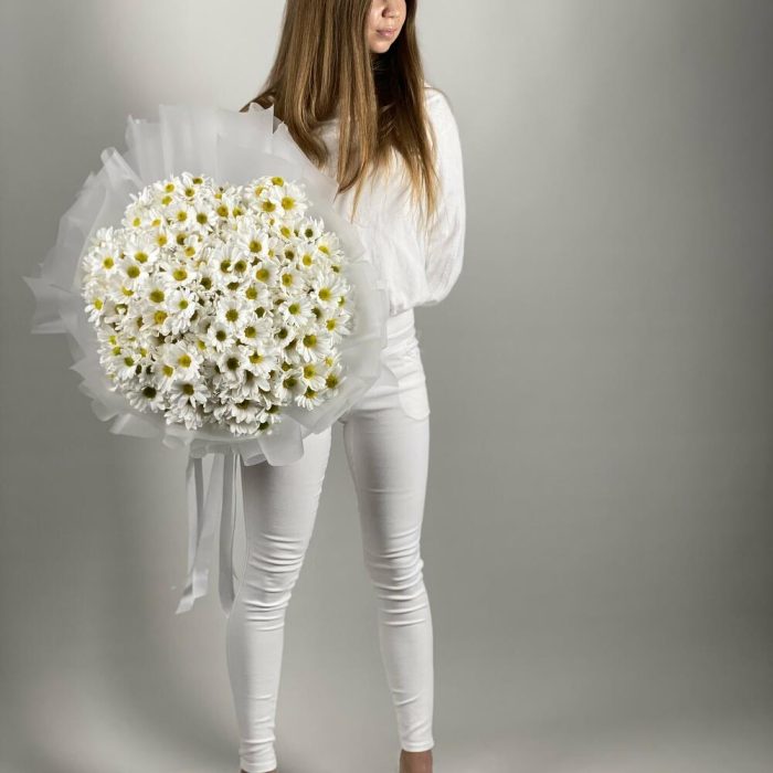 Прекрасные хризантемы в форме ромашек, порадует Ваших родных и близкий! Станет приятным подарком к любому празднику.