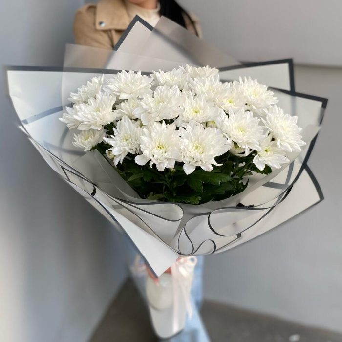 Стильный монобукет из хризантем