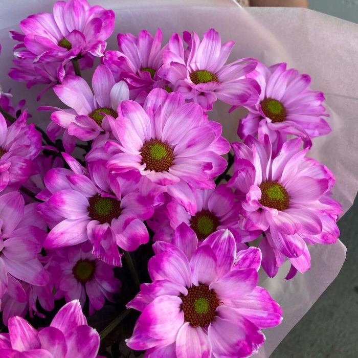 Лента атласная – 2 шт.Тишью – 2 шт.Хризантема кустовая ромашка – 5 шт.Фоамиран (упаковка) – 1 шт.